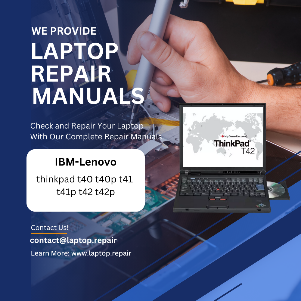 Transform your laptop repair experience with our detailed IBM-Lenovo thinkpad t40 t40p t41 t41p t42 t42p service manual. Whether you’re a seasoned repair technician or a DIY enthusiast looking to fix your own device, this complete documentation package gives you everything you need to successfully service, upgrade, and repair your IBM-Lenovo thinkpad t40 t40p t41 t41p t42 t42p laptop.